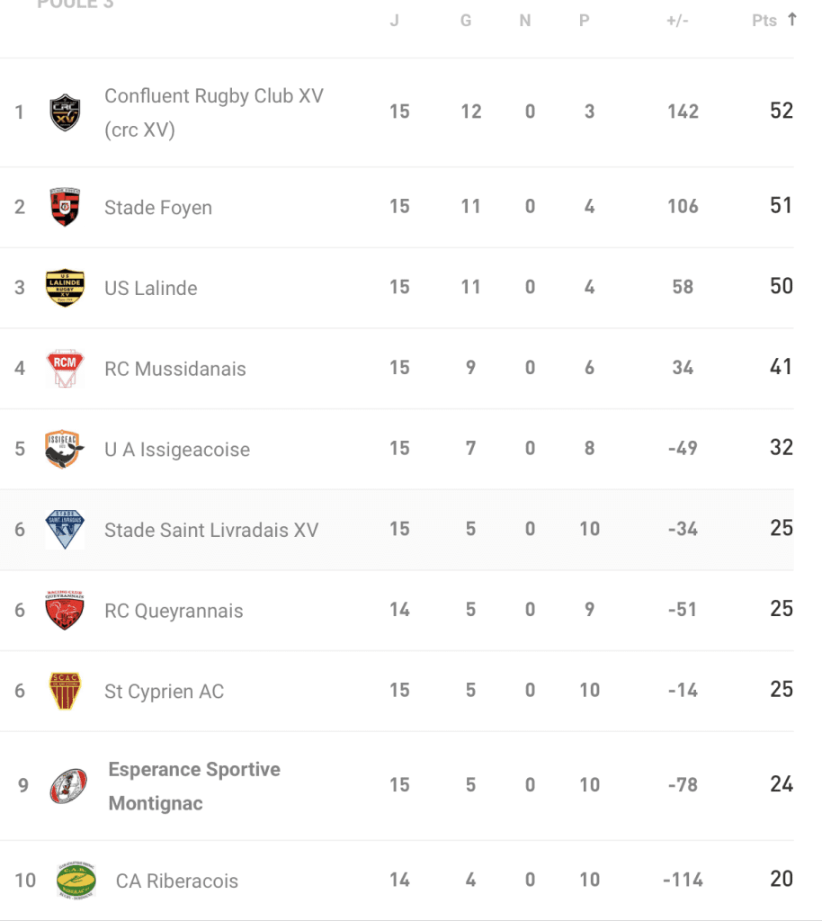 Grâce à ce succès, Montpon prend un peu d’avance sur le bas du classement, avec un écart de 4 points sur son poursuivant. Les périgourdins restent également en embuscade dans la course pour le haut du tableau, avec seulement 3 points de retard sur le 2e, Mascaret FC. Un classement serré qui promet encore de belles batailles pour la suite de la saison.