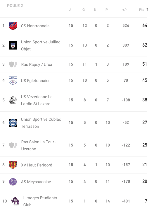 Ras St Yrieix – URCA – XV Haut Périgord