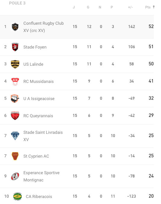 Le XV Haut Périgord voudra enchaîner après sa dernière victoire pour rester dans la course au maintien, tandis que Saint-Yrieix URCA cherchera à combler son retard sur les deux premiers du classement.